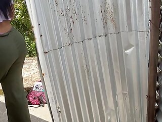 "Big ass and voluptuous Latina surprised by camera in outdoor beach booth"