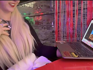"Very hot blonde caresses her pussy to masturbate with a DILDO"